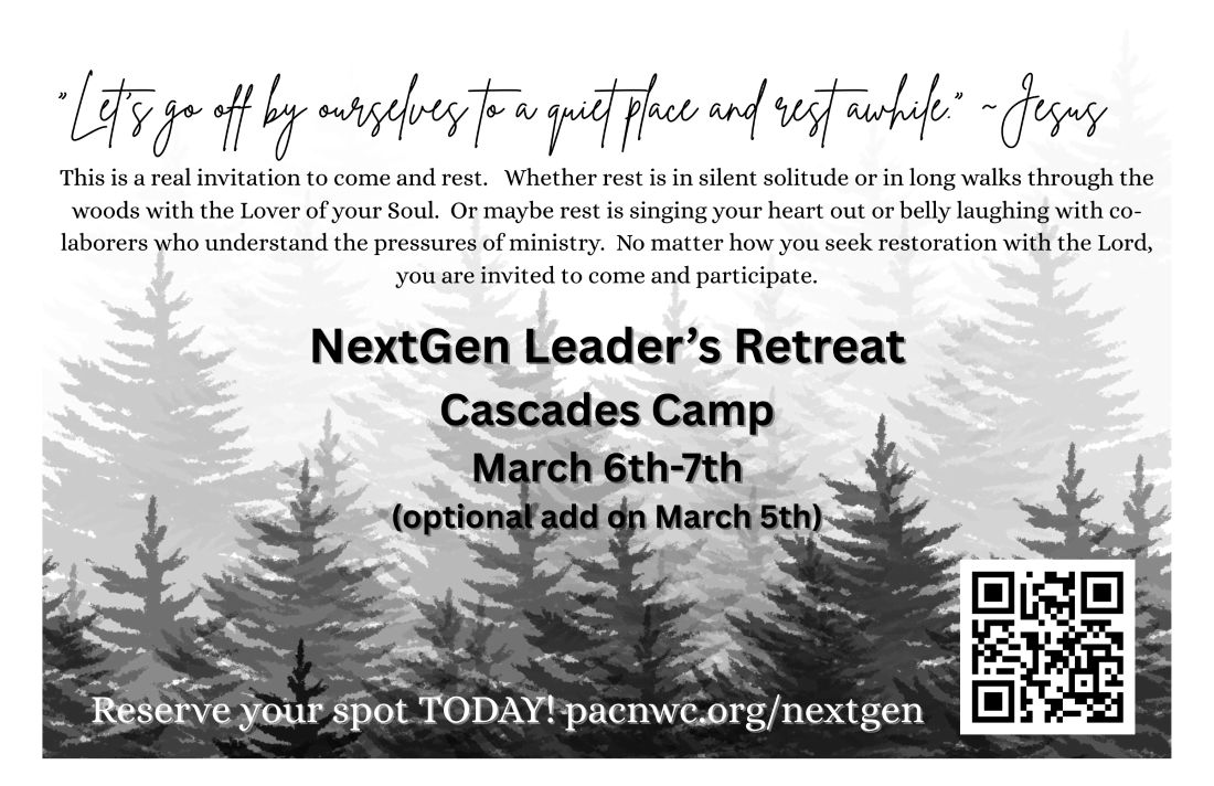 This retreat is intentionally Lo-Fi, focusing on building relationships, rest, and encouragement.  You will have a lot of time to connect, explore, and have fun.  We have invited Pete Sutton, ECC Director of Youth and Young Adults, and Jessica Springer, ECC Director of Children and Families, to be our speakers.  You will come away edified, energized, and ready for your next season of ministry. This event is designed for key youth, children, and family ministry leaders from PacNWC churches.  This includes paid and unpaid staff, interns, and volunteers who carry the weight of leadership with their ministry. New this year is the option to join others on Thursday night.  This is a great opportunity for a personal retreat, getting some extra rest, and spending more time with your colleagues.  Erik Cave and Lisa Whatley will be there the entire time to take care of your needs and hang out with you, if you so desire.